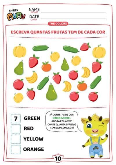 Baixe gratuitamente a atividade e incentive os pequenos a aprenderem brincando com o Amigo Mumu Inglês.